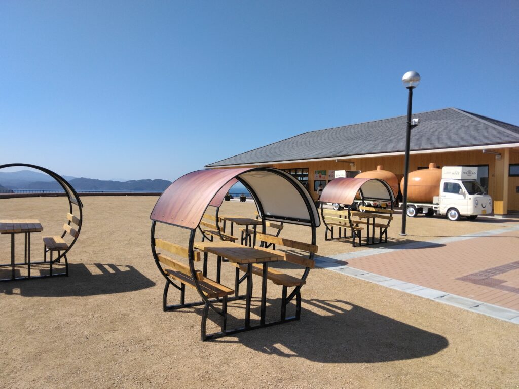 リニューアル工事のために一時休業している「道の駅うずしお」の代わりに臨時駐車場として利用されていた南淡路駐車場施設(笹山駐車場)に、「鳴門岬駐車場 うずまちテラス」がオープンしました。