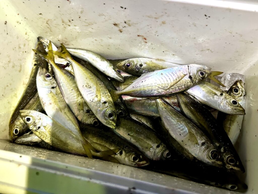 地合いだったのか、1時間ほどでたくさんのアジフライが釣れました。
